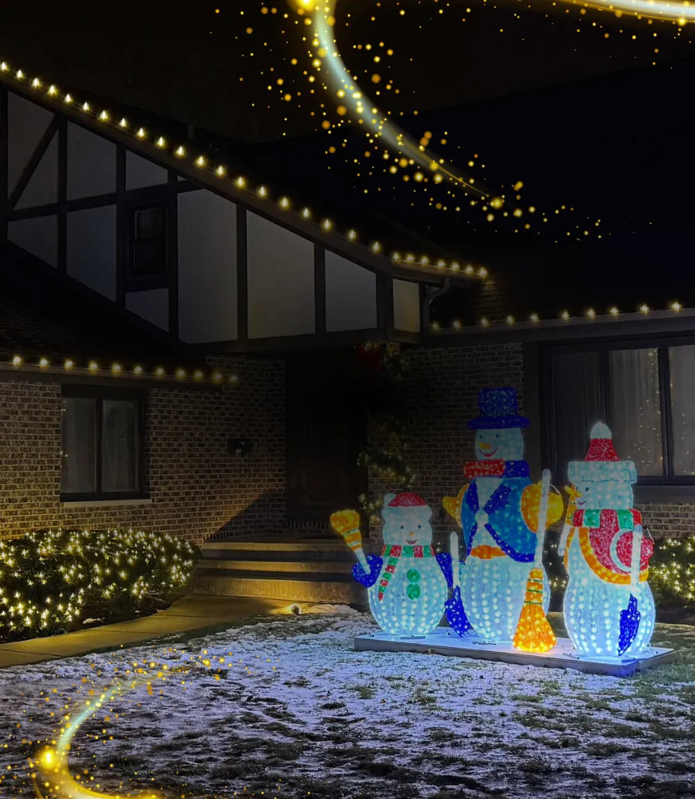 Our services include complete installation, with all materials like extension cords and timers provided. We’ll need a working outlet, possibly two, that’s all. Since all work is done outdoors, you don’t need to be home when our B&B-trained installers arrive to set up. It’s convenient and hassle-free.